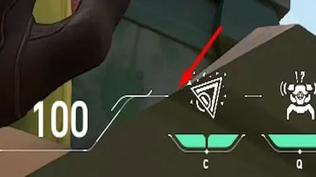 Coloca la punta izquierda de la línea del HUD, entre la torreta y el Alarmbot, de forma que toque el centro de la línea inferior de esta linterna (imagen 2).
